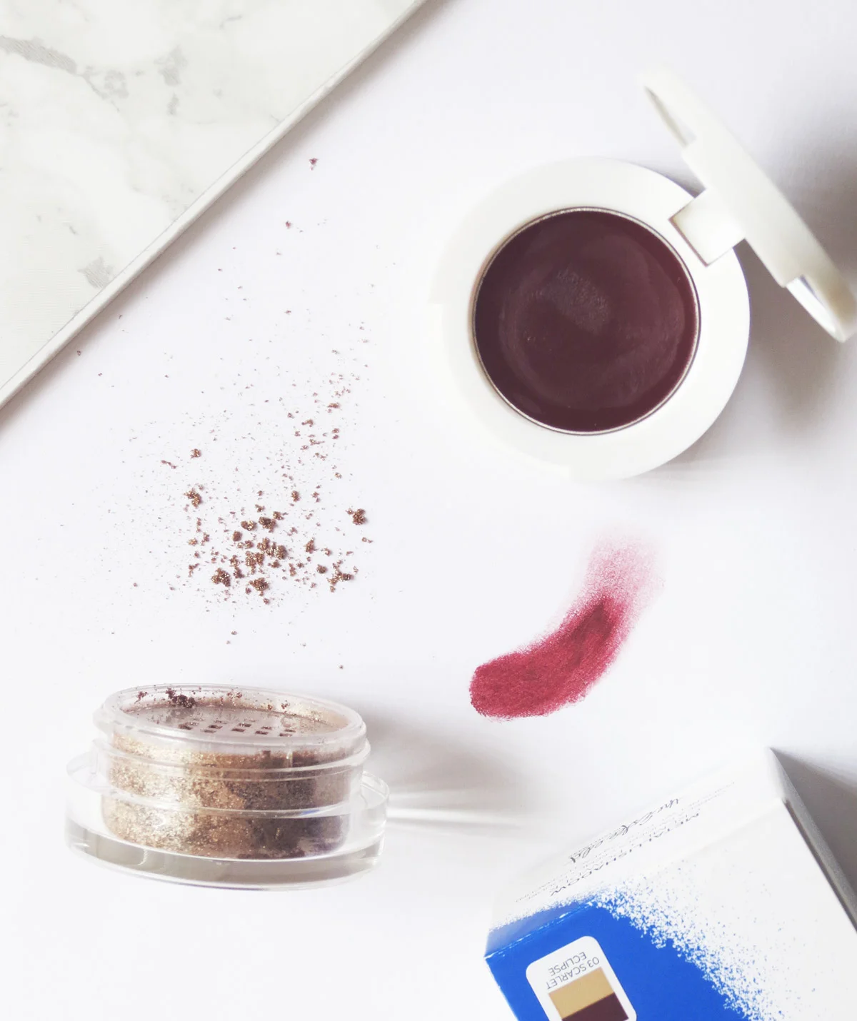 It's one of those two-in-one cream eyeshadow and loose glitter pigment pots that a few brands have come out with lately. I've never tried one before, but I'm already sold on the concept. The shade Scarlet Eclipse is a stunning burgundy cream eyeshadow with a bronze glitter to pat on top. The resulting effect looks like an autumn leaf on your eyes - I should probably have saved this review until it was actually autumn, but I was just too excited.